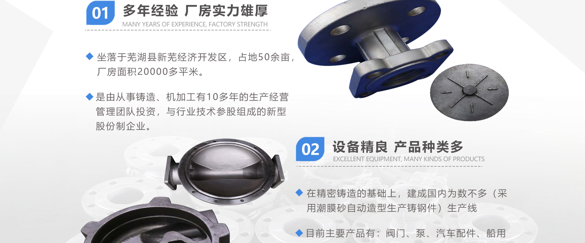 安徽偉工機械科技有限公司,坐落于安徽蕪湖新蕪經(jīng)濟開發(fā)區(qū),是一家専業(yè)從事鑄造產(chǎn)品設(shè)計、研發(fā)、生產(chǎn)、銷售于一體的企業(yè),公司為客戶的產(chǎn)品提供多樣的技術(shù)支持與設(shè)計,公司主要鑄造技術(shù)有潮模砂鑄造、硅溶膠精鑄工藝。主要產(chǎn)品有:不銹鋼閥門配件、泵閥配件、汽車配件、工業(yè)管道配件、工程機械配件、汽車配件等。材質(zhì)為:低合金鋼、304、316、316L、鉻鉬鋼、哈氏合金、碳鋼、雙相鋼等。公司已先后通過ISO9001和TS16949等多種體系審核,以完備的管理手段和齊全的檢測設(shè)備滿足客戶需求,進(jìn)的設(shè)備,専業(yè)的技術(shù),嚴(yán)謹(jǐn)?shù)墓芾恚€(wěn)定的質(zhì)量。服務(wù)客戶,鑄造未來,偉工誠摯的歡迎新老客戶共同商洽合作